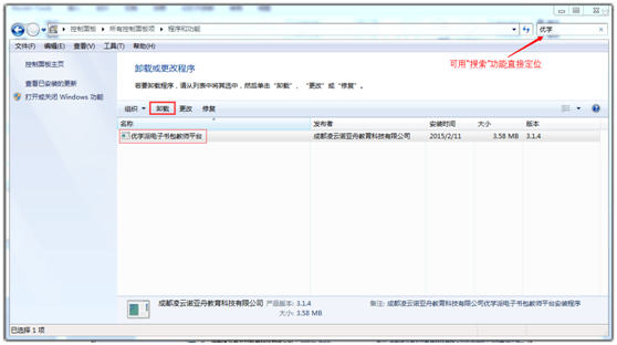 2.点击“卸载程序”,选择优学派智慧课堂教师平台,点击“卸载”,如下图: