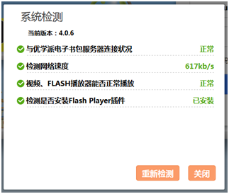 系统检测:检测以下四项,帮助老师确定当前的系统运行环境是否正常。